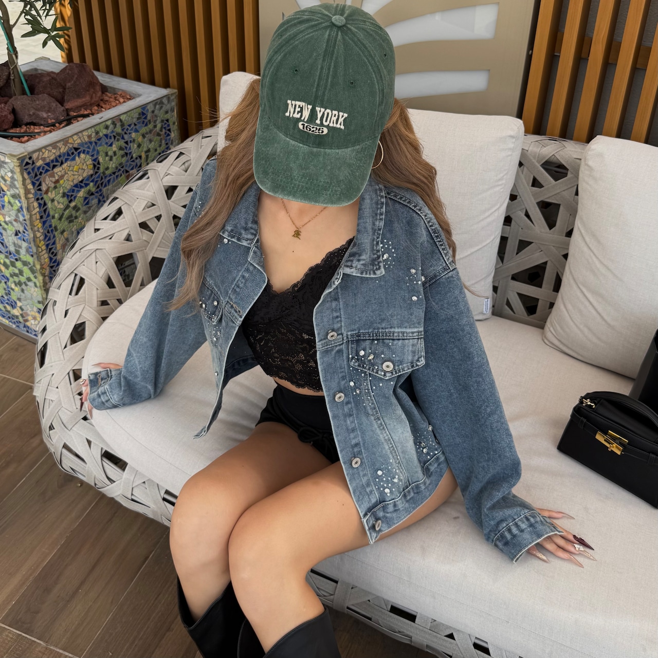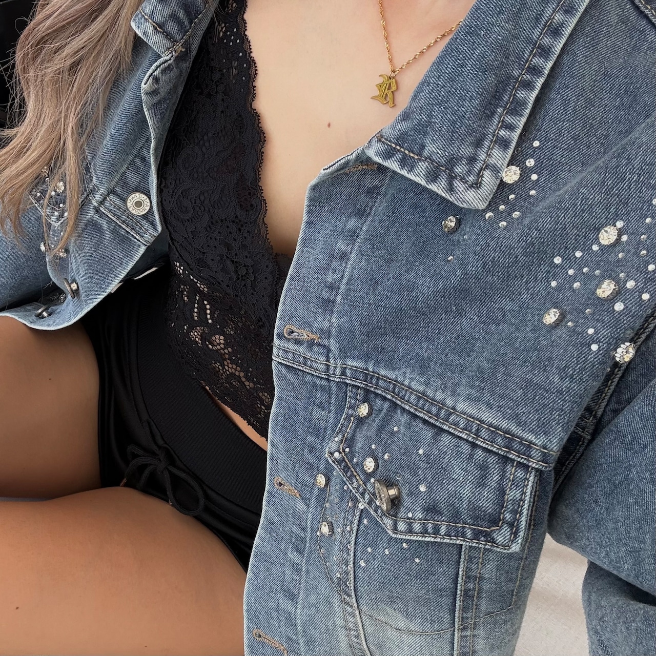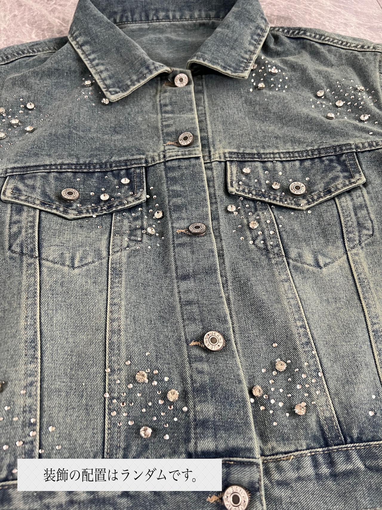 ビジュー×ラインストーン付き/デニムジャケット