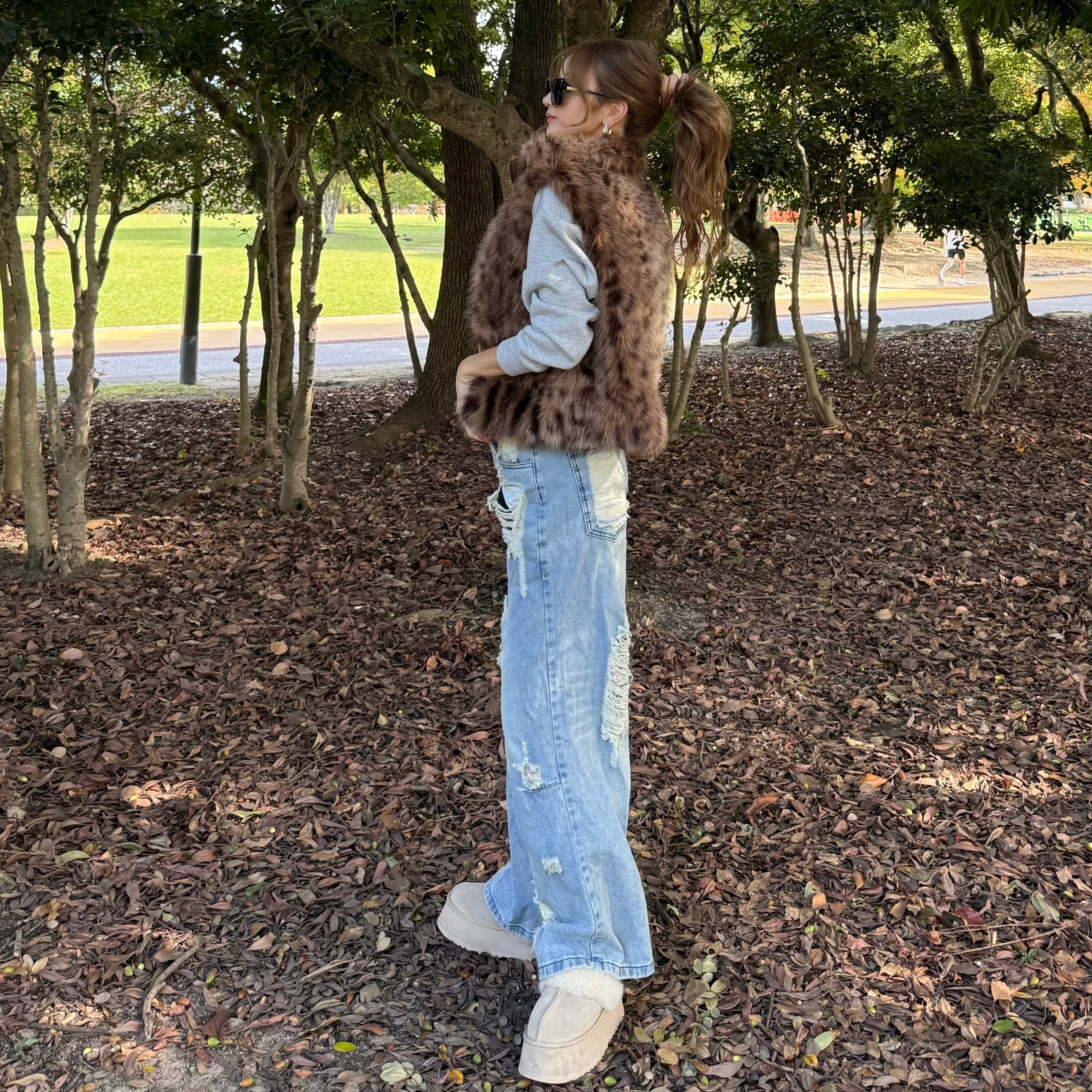 ・フェイクファー/レオパード柄ベスト