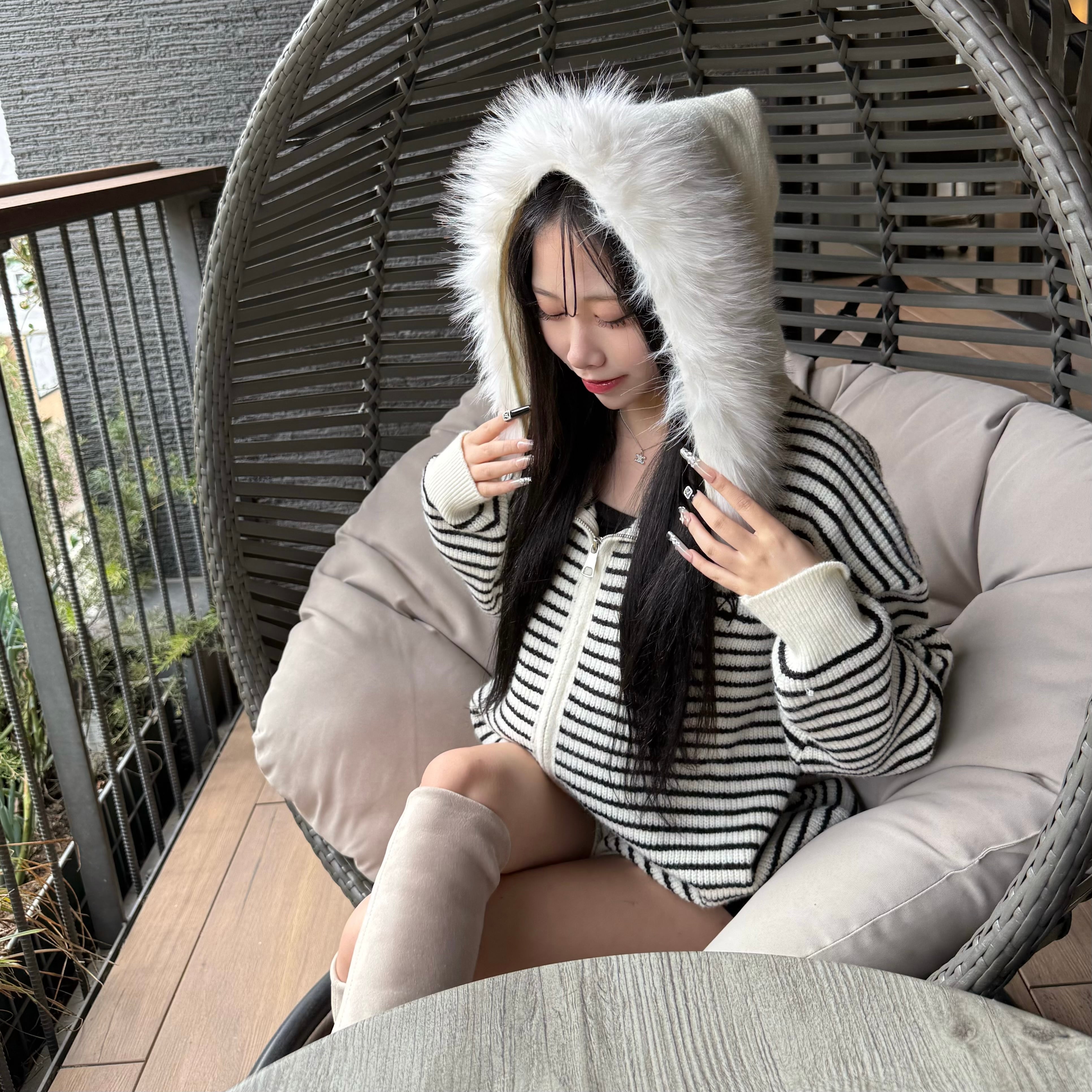 ボーダー/zip upニットfoodie