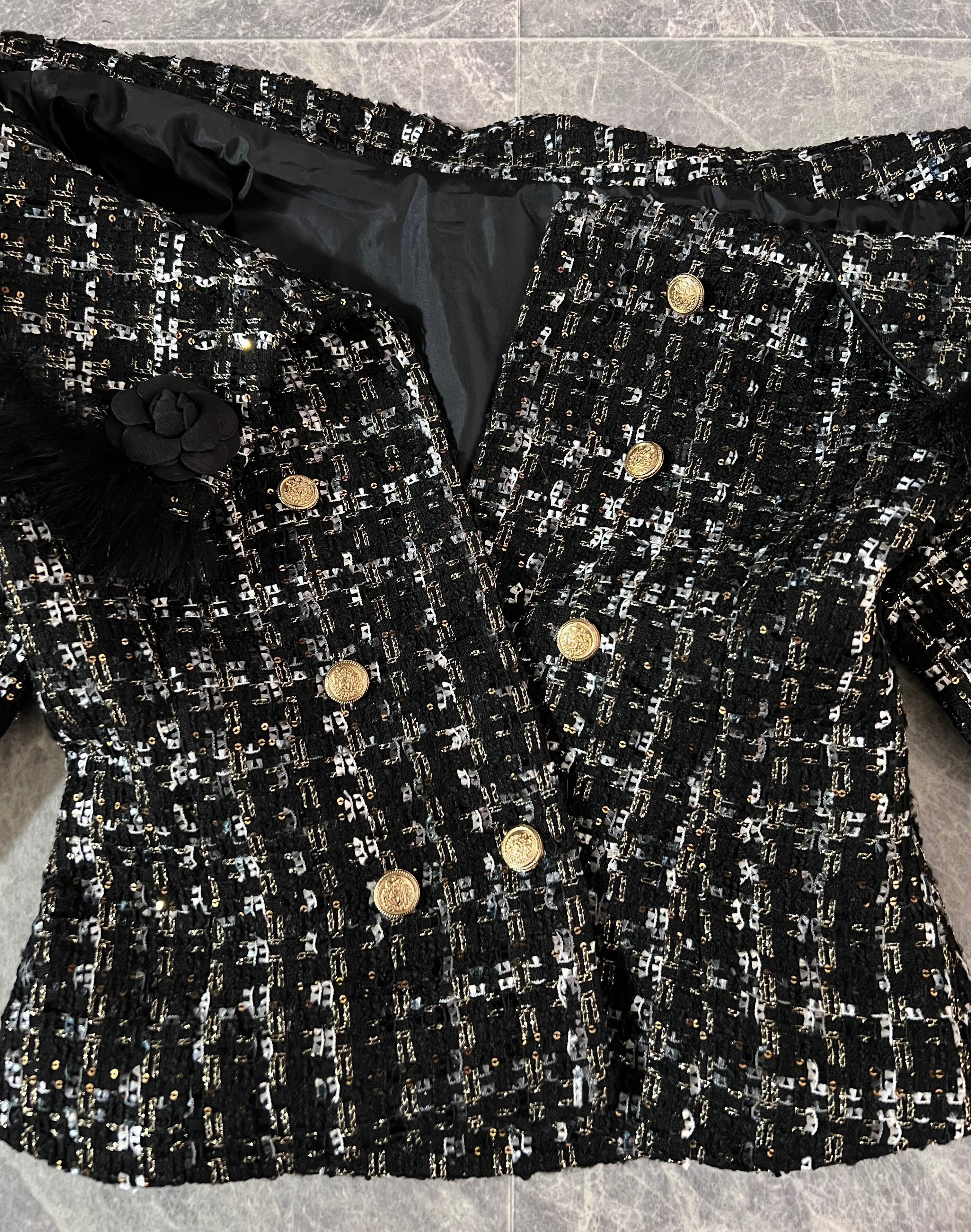 ・ワンショルダーツイードトップス×ミニスカート/SET