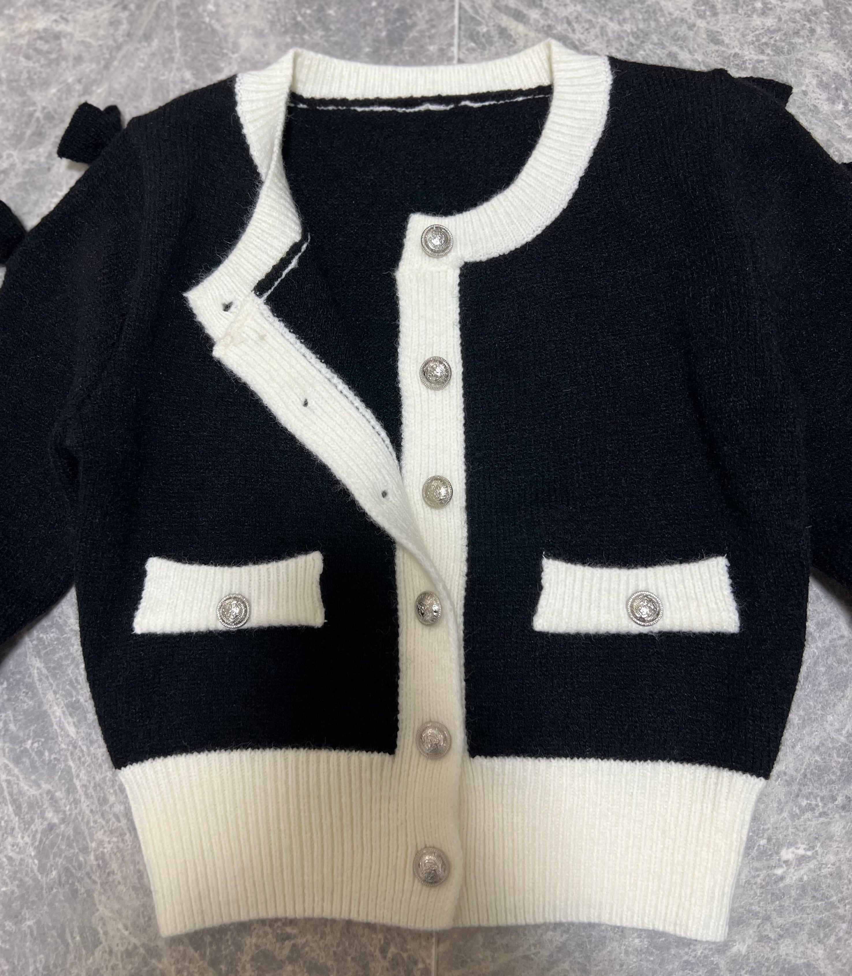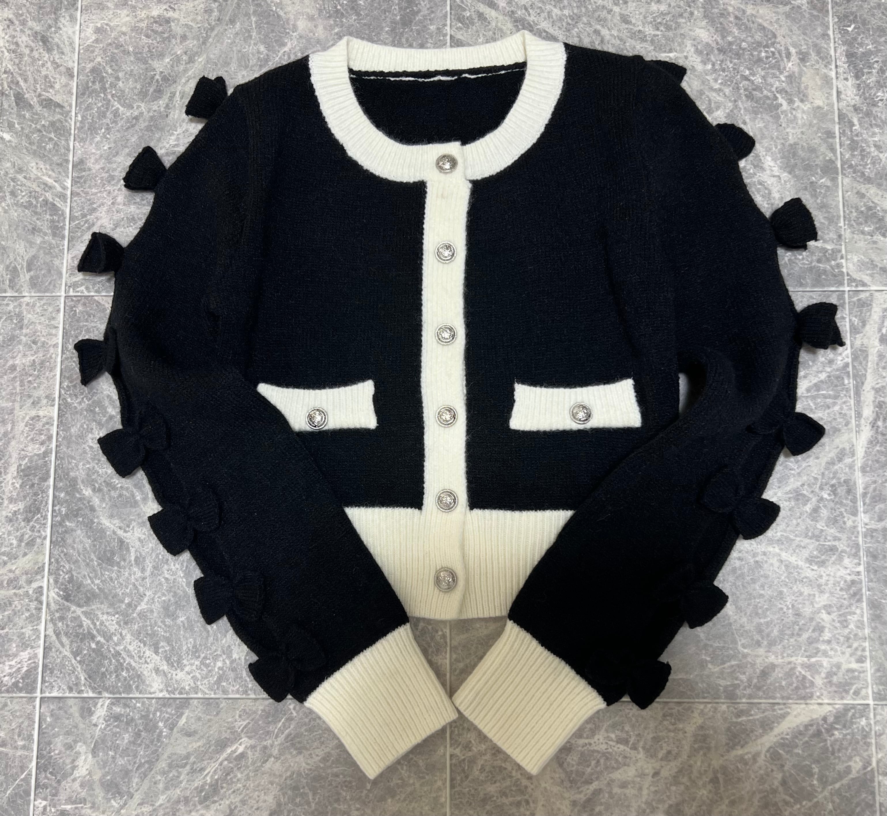 リボンスリーブカーディガン×ベロアショートPT/set up