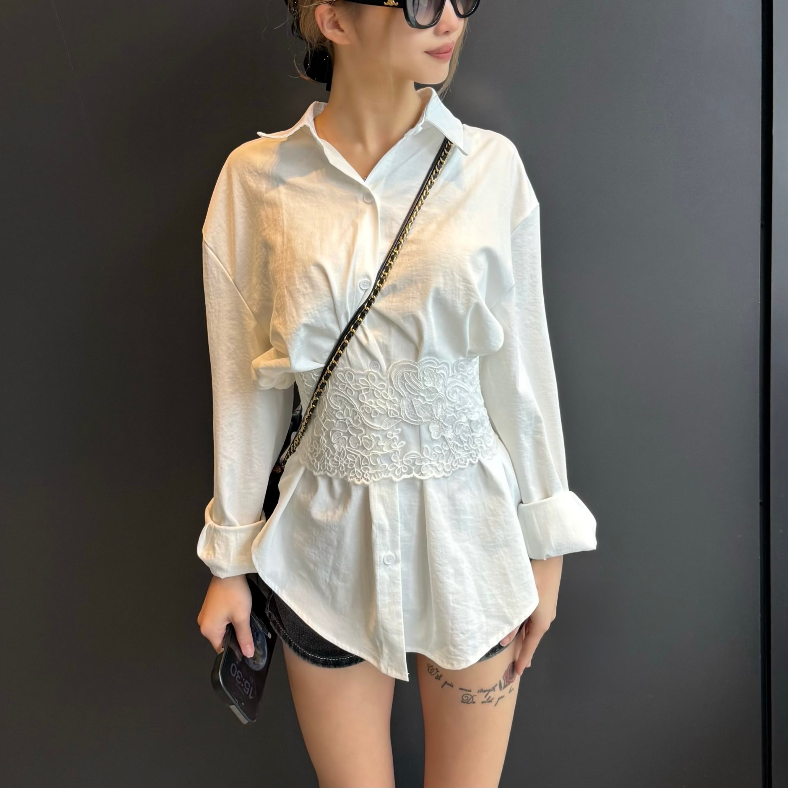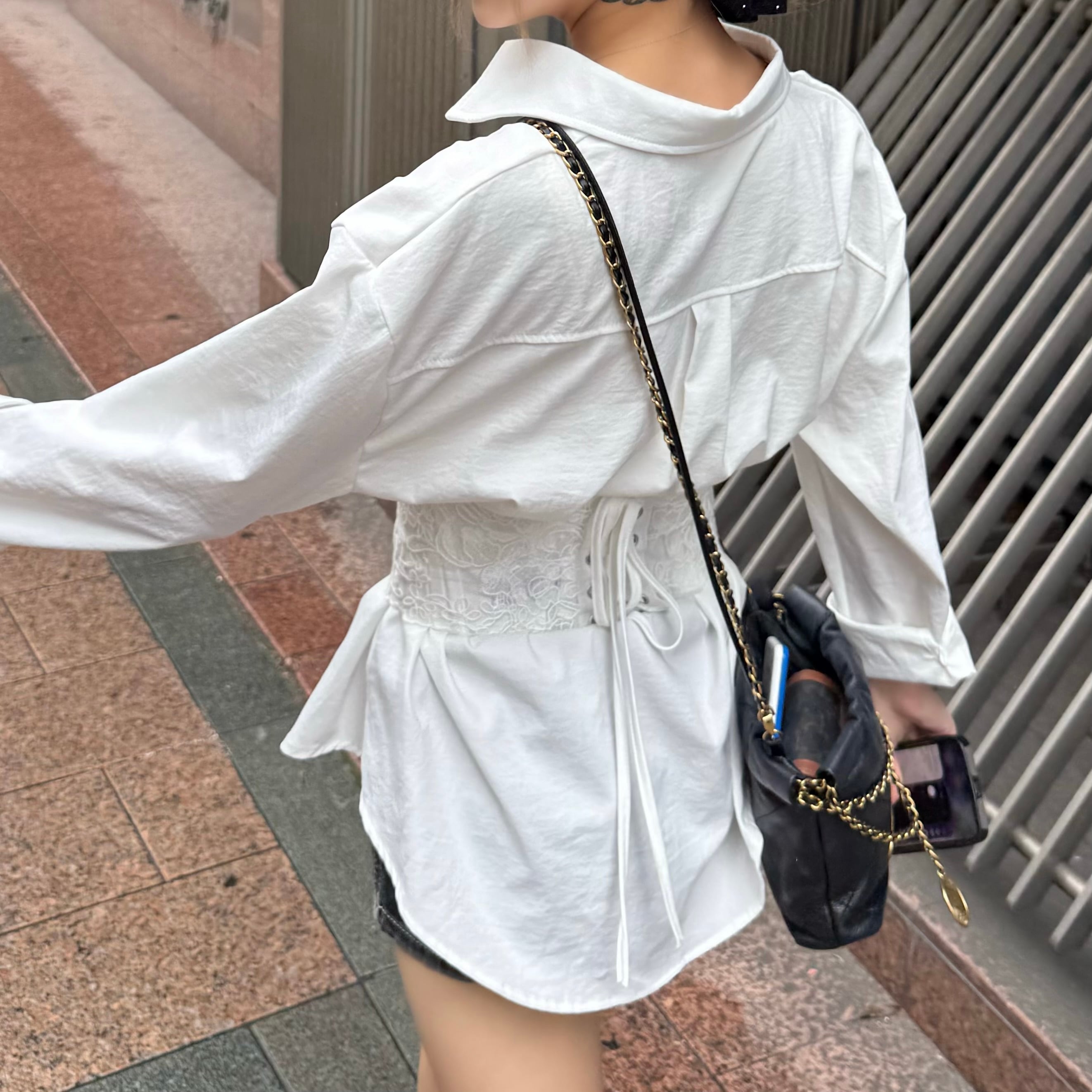 レースコルセット付き/ホワイトシャツ